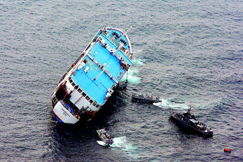 據(jù)臺(tái)灣《聯(lián)合報(bào)》報(bào)道,5日,這艘排水量7268噸的“超級(jí)渡輪9號(hào)”載運(yùn)847名乘客、117名船員及4名海事官員,自菲律賓南部的桑托斯將軍港出發(fā),目的地是中部的伊洛伊洛市。啟航約19個(gè)小時(shí)后,于6日凌晨2時(shí)30分開始傾斜,位置是菲國首都馬尼拉以南860公里處的海域。官員表示,搜救作業(yè)因?yàn)樘旌蛄己眉安糠执磺≡诟浇蚨靡皂樌M(jìn)行。