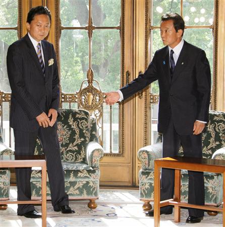 據(jù)日本《產(chǎn)經(jīng)新聞》9月14日?qǐng)?bào)道,即將就任首相的民主黨代表鳩山由紀(jì)夫14日下午在國(guó)會(huì)議事堂內(nèi)與麻生太郎進(jìn)行了會(huì)談。