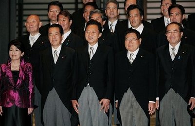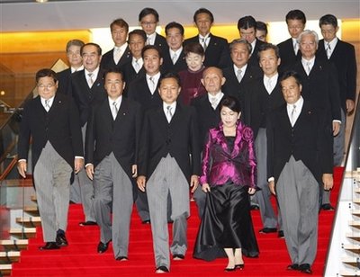 中新網(wǎng)9月17日電 據(jù)香港《文匯報》報道,日本新任首相鳩山由紀(jì)夫16日公布其內(nèi)閣成員名單,分別為:金融兼郵政改革大臣─龜井靜香(72歲,國民新黨黨魁)、副首相兼國家戰(zhàn)略大臣─菅直人(62歲)、首相─鳩山由紀(jì)夫(62歲) 、少子化兼消費(fèi)者行政大臣─福島瑞穗(53歲,社民黨黨魁)、外務(wù)大臣─岡田克也(56歲)、國家公安委員長─中井洽(67歲)、國土交通大臣─前原誠司(47歲)、財務(wù)大臣─藤井裕久(77歲)、內(nèi)閣官房長官─平野博文(60歲)、防衛(wèi)大臣─北澤俊美(71歲)、文部科學(xué)大臣─川端達(dá)夫(64歲)、法務(wù)大臣─千葉景子(61歲)、農(nóng)林水產(chǎn)大臣─赤松廣隆(61歲)、經(jīng)濟(jì)產(chǎn)業(yè)大臣─直山鳥 正行(63歲)、總務(wù)大臣─原口一博(50歲)、行政刷新會議大臣─仙谷由人(63歲)、環(huán)境大臣─小澤銳仁(55歲)、厚生勞動大臣─長妻昭(49歲) 。