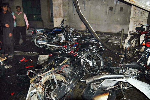 爆炸發(fā)生在拉合爾一個(gè)名為“月亮”的市場(chǎng)內(nèi)一所警察局外。爆炸導(dǎo)致鄰近多間商鋪和一家銀行起火,一些停在附近的車(chē)輛或被炸毀,或被引燃。爆炸還導(dǎo)致該地區(qū)電力供應(yīng)中斷。