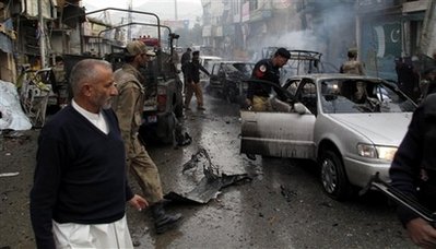 中新網(wǎng)2月23日電 據(jù)美聯(lián)社報(bào)道,巴基斯坦西北部斯瓦特山谷地區(qū)首府閔格拉(Mingora)鬧市區(qū)22日發(fā)生針對(duì)巴安保部隊(duì)的自殺式爆炸襲擊,造成至少8人死亡,37人受傷。