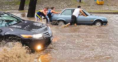 馬場(chǎng)的一名目擊者表示,天色瞬間昏暗,暴風(fēng)驟然而來(lái),接著下了10分鐘冰雹,把賽道變成白色。市中心部分街道水深及膝,民眾冒著暴雨涉水而行,情況狼狽。氣象局在18分鐘內(nèi)錄得19毫米雨量,不足1小時(shí)便達(dá)33毫米。當(dāng)局表示,從未見(jiàn)過(guò)這樣的風(fēng)暴,預(yù)測(cè)將會(huì)持續(xù)。