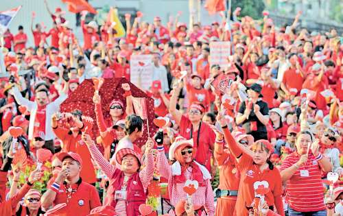 據(jù)悉,泰國紅衫軍今天已在曼谷聚集超過10萬人。核心領(lǐng)袖納塔兀(Natthawut Saikua)指出,即使政府宣布緊急狀態(tài)也不能制止支持者示威。