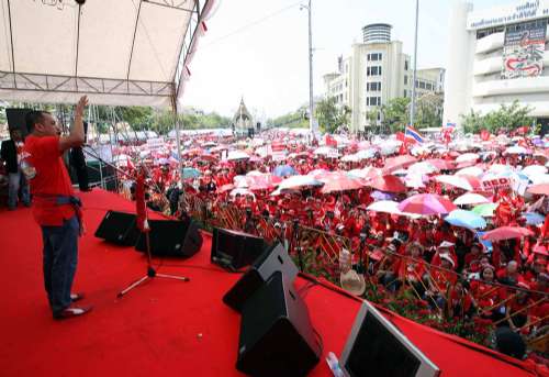從十四日上午十時(shí)開(kāi)始,素蓬、乍都蓬等紅衫軍領(lǐng)導(dǎo)人輪番登場(chǎng)發(fā)表演講,不時(shí)贏得臺(tái)下紅衫軍的陣陣掌聲與喝彩。
