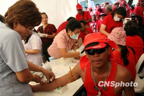 中新網(wǎng)3月16日電 據(jù)泰國(guó)《曼谷郵報(bào)》網(wǎng)站報(bào)道,泰國(guó)“反獨(dú)裁民主聯(lián)合前線”領(lǐng)導(dǎo)人納塔烏特(Nattawut Saikua)16日上午表示,紅衫軍將于當(dāng)?shù)貢r(shí)間16日下午3點(diǎn)到4點(diǎn)之間,將示威民眾的鮮血潑灑到總理府的門口,而不是原來(lái)宣布的6點(diǎn)。