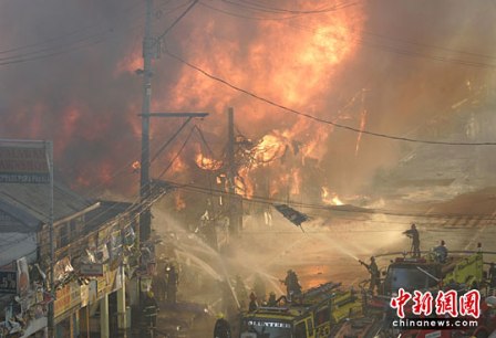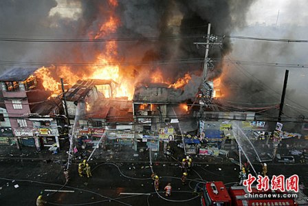 中新網(wǎng)4月26日電 據(jù)臺灣“中廣新聞網(wǎng)”報(bào)道,菲律賓首都馬尼拉郊區(qū)奎松市的一座貧民窟25日下午慘遭火災(zāi)肆虐,大火一發(fā)不可收拾,數(shù)百棟房屋付之一炬,上萬人無家可歸。