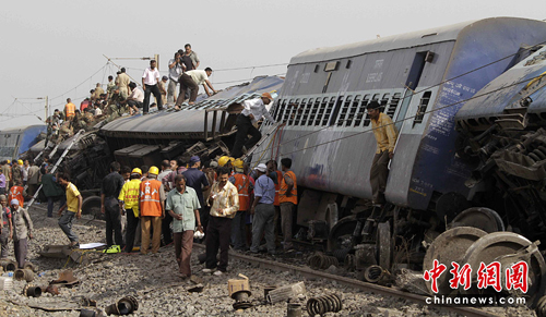 事發(fā)于當(dāng)?shù)貢r(shí)間28日凌晨1時(shí)半,一列由東部西孟加拉國(guó)邦首府西加爾各答開往西部大城市孟買的快速客運(yùn)火車,駛至加爾各答以西約150公里的一條小鎮(zhèn)時(shí),13節(jié)車廂突然出軌,一列貨運(yùn)火車迎面駛至,把客車其中4節(jié)車廂撞至嚴(yán)重變形扭曲,大批乘客當(dāng)場(chǎng)喪生,多人被困。地方官員稱,列車出軌時(shí)大部分乘客正睡覺,來不及反應(yīng),死傷人數(shù)可能繼續(xù)增加。