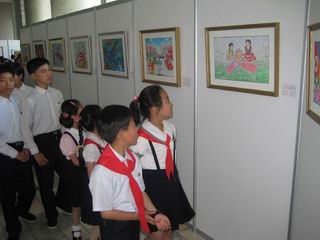 中新網(wǎng)6月4日電 據(jù)中國(guó)駐朝鮮大使館網(wǎng)站報(bào)道,由朝鮮對(duì)外文化聯(lián)絡(luò)委員會(huì)、朝鮮金日成社會(huì)主義青年同盟、上海市對(duì)外文化交流協(xié)會(huì)共同主辦的《中朝友好年——中朝兩國(guó)少兒書(shū)畫(huà)展》于6月1日“國(guó)際兒童節(jié)”在平壤的萬(wàn)景臺(tái)少年宮隆重開(kāi)幕。