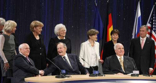 紀念活動主辦方贊揚老布什與戈爾巴喬夫分任美蘇領(lǐng)袖時,對拆除柏林墻及促成兩德統(tǒng)一的貢獻,還贊揚德國前總理科爾“抓住關(guān)鍵的一刻”,促成德國統(tǒng)一。