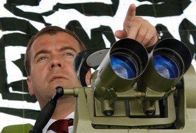 梅德韋杰夫?qū)?22厘米口徑的榴彈炮很感興趣。他說:“我對它很熟悉,以前曾經(jīng)開過炮!