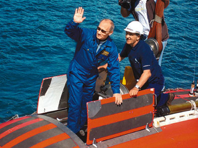 中新網(wǎng)8月2日電 俄羅斯總理普京1日登上一艘迷你潛艇,潛入位于西伯利亞的全球最深湖泊貝加爾湖,深入1400米的湖底,考察珍貴的天然氣水晶。據(jù)香港《文匯報(bào)》報(bào)道,這是繼兩年前裸露上身釣魚“曬腹肌”,以及去年以麻醉槍“打老虎”勇救電視臺(tái)人員后,56歲的普京再次展現(xiàn)其男子氣概。