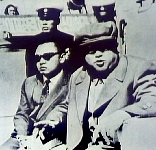 中新網(wǎng)8月28日電 據(jù)韓國《中央日報》28日報道,朝鮮中央電視臺25日播放了講述朝鮮國防委員長金正日生平的紀(jì)錄片《照耀世界的先軍太陽》第一部。圖片顯示,金委員長在金日成綜合大學(xué)念大二時的1961年,他陪伴金日成主席(1994年去世)前往大德山軍隊進(jìn)行現(xiàn)場指導(dǎo),坐在旁邊的位置上。這是金日成父子首次一起進(jìn)行現(xiàn)場指導(dǎo)的場面。