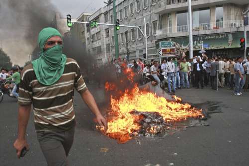 在十三日爆發(fā)的騷亂中,揮舞警棍的防暴警察與示威者爆發(fā)沖突,群眾高呼“處死獨裁者”,向警員扔擲石塊,又放火焚燒警車和垃圾桶。大批警員駐守在內(nèi)政部周圍,一幢銀行建筑物嚴重焚毀,通往德黑蘭大學(xué)學(xué)生宿舍的道路被封鎖。