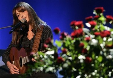 法國總統(tǒng)薩科齊的夫人卡拉·布呂尼在德國紐倫堡一電視節(jié)目中演唱她的新歌。