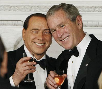 意大利總理貝盧斯科尼14日參加完在巴黎舉行的歐盟國家領導人會議之后,前往華盛頓會見布什。兩人舉止親密,臂挽著臂在白宮草坪散步,仿佛多年老友。當晚,為了紀念“哥侖布發(fā)現美洲”和歡迎貝盧斯科尼,布什在白宮設宴招待一些美國和意大利政要。