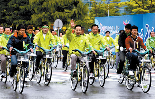 李明博當(dāng)天出席在慶南昌原舉行的“第一屆韓國自行車慶典”閉幕活動(dòng),并通過賀詞作了上述表述。他說,大城市應(yīng)建設(shè)可安全騎自行車的專用道,并制定保險(xiǎn)制度,同時(shí)為建立各項(xiàng)基礎(chǔ)設(shè)施做諸般工作。政府正在制定相關(guān)計(jì)劃。