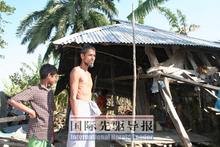 11月19日,這位孟加拉國南部巴古納縣的村民一邊指著身邊被風暴吹倒的房屋,一邊激動地對《國際先驅(qū)導報》記者說:“援助對于我們來說十分有限,更多的時候是在捱餓!