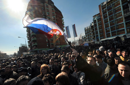 19日中午,幾千名塞族學(xué)生在大橋北岸游行,塞爾維亞國旗迎風(fēng)飄舞。游行是在12點44分開始的,寓意是聯(lián)合國安理會第1244號決議。該決議重申南聯(lián)盟(主權(quán)地位后為塞爾維亞繼承)對科索沃地區(qū)擁有主權(quán)。