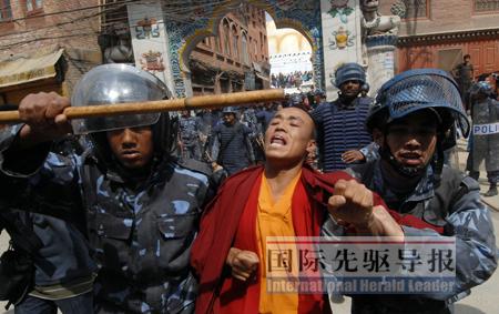 次仁們算是幸運的!秶H先驅導報》記者在現(xiàn)場看到,被煽動沖在前面和尼泊爾警方對峙、沖突的多是青少年,而那些“藏獨”骨干則在現(xiàn)場附近拿著手機指揮、清點人頭。
