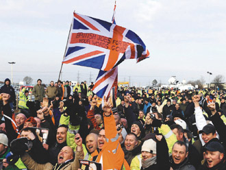 英國(guó)東部林肯郡一座煉油廠上月發(fā)生反外勞罷工,后來波及20處其它油氣設(shè)施,最后廠方同意198個(gè)職位中的一半聘用英國(guó)勞工,騷亂才結(jié)束,這次罷工為歐洲企業(yè)主敲起警鐘,暗示將來會(huì)有更多激烈糾紛。