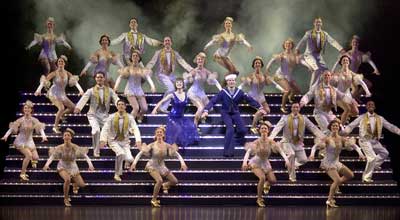 “42街”是橫貫整個(gè)百老匯的一條大街,云集著幾十家劇院和上千名音樂劇演員。在那里,每天都上演著歌舞升平、星光燦爛的奢華景象。而在音樂劇《42街》中,將百老匯42街搬上劇場(chǎng),以演員在街頭舞蹈的場(chǎng)面呈現(xiàn)百老匯的繁華與輝煌。燈火輝煌的百老匯42街,劇院林立,演員精神飽滿。20級(jí)的霓虹階梯上,54名年輕的演員們正在跳著歡快的踢踏舞,金光閃閃的服裝令人應(yīng)接不暇。他們整齊而隨性的動(dòng)作,咔咔作響的舞鞋,每一個(gè)聲音和每一個(gè)舞步都能讓人陶醉。這種純粹的、美式的、壯觀的踢踏舞群,完完全全把美國(guó)的繁華耀眼展示了出來。閃亮如星的布景、華麗炫目的服裝,盡顯的都是百老匯舞臺(tái)劇中的奢華主義。(張學(xué)軍)