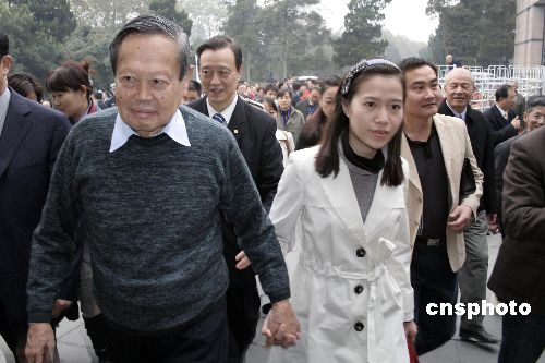 11月12日,著名物理學家、諾貝爾獎得主楊振寧攜夫人翁帆回到故鄉(xiāng)安徽合肥,準備參加首屆僑界精英安徽發(fā)展論壇大會。中新社發(fā) 張婭子 攝