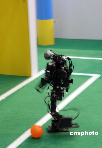 11月14日,海峽兩岸機(jī)器人足球賽在重慶大學(xué)鳴鑼開(kāi)賽,來(lái)自國(guó)際科技大學(xué)、上海交通大學(xué)、清華大學(xué)、華南理工大學(xué)、重慶大學(xué)、成功大學(xué)、中正大學(xué)、淡江大學(xué)、長(zhǎng)庚大學(xué)、高雄第一科技大學(xué)等海峽兩岸知名高校的機(jī)器人,將分為人形機(jī)器人和中型機(jī)器人兩種組別進(jìn)行比賽。據(jù)悉,比賽是由重慶大學(xué)自動(dòng)化學(xué)院、中國(guó)自動(dòng)化學(xué)會(huì)機(jī)器人競(jìng)賽委員會(huì)主辦。中新社發(fā) 郭晉嘉 攝