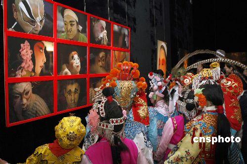 圖為學習京劇的孩子們身著戲服在攝影展上參觀。中新社發(fā) 盛佳鵬 攝
