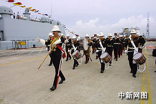 2001年8月23日至11月16日,“深圳號(hào)”導(dǎo)彈驅(qū)逐艦和“豐倉(cāng)”號(hào)綜合補(bǔ)給艦組成艦艇編隊(duì)出訪德國(guó)、英國(guó)、法國(guó)和意大利等歐洲四國(guó),11月10日,深圳艦歸國(guó)途中經(jīng)停香港。