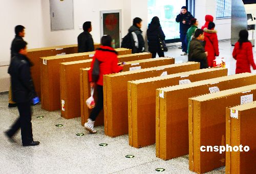 12月17日,在北京地鐵5號線天通苑站出入口處,市民正穿梭于新安裝完畢的一批電子設(shè)備中。據(jù)工作人員介紹,地鐵車站安裝的新設(shè)備是自動檢售票系統(tǒng),出入口處的是閘機,其相應(yīng)的配套設(shè)備還有自動售票和充值機。目前5號線全線已經(jīng)陸續(xù)安裝了新的自動檢售票系統(tǒng),但不會立即投入使用,還需要時間調(diào)試。屆時,北京地鐵1、2、13號線也將對原有的檢售票系統(tǒng)進(jìn)行改造,初步預(yù)計明年3月以后,所有北京地鐵線路都要開通和使用自動檢售票系統(tǒng)。中新社發(fā) 鄭雄增 攝