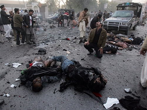 趕往現(xiàn)場的一名目擊記者說,爆炸發(fā)生前不久,他聽到了兩聲槍響。他看到一條馬路上躺著大約8具死者尸體,還有一具被炸彈炸得面目全非的人頭。在爆炸現(xiàn)場負責(zé)維持秩序的警官亞辛說:“包括貝-布托在內(nèi)的政黨領(lǐng)導(dǎo)人開始往外走時,一名男子試圖靠近他們。接著,他開了幾槍,然后把自己炸死了!