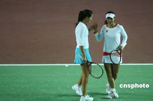 一月二日,伊萬(wàn)諾維奇/彭帥在香港網(wǎng)球精英賽雙打比賽中以二比八負(fù)于德門蒂耶娃/拉切德組合。當(dāng)晚﹐香港網(wǎng)球精英賽在維多利亞公園網(wǎng)球場(chǎng)揭幕。中新社發(fā) 武仲林 攝