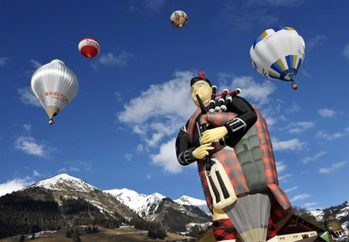 第30屆瑞士黛堡國際熱氣球節(jié)1月19日-30日在中部阿爾卑斯山區(qū)腹地的黛堡小鎮(zhèn)絢麗開場。期間有來自18個國家的140多名選手?jǐn)y90多只造型各異的熱氣球參賽。