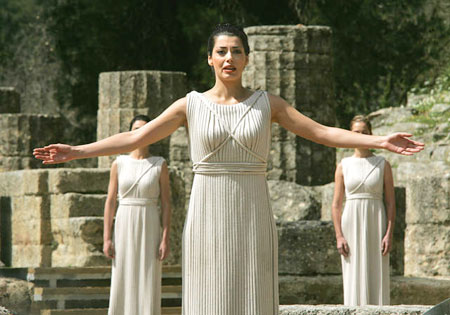 在現(xiàn)代奧運會中,奧林匹克圣火是人類價值的重要象征,也是人類與火息息相關(guān)的重要表現(xiàn)。正如當(dāng)年宣布“神圣休戰(zhàn)”的傳令兵,今天的火炬手,手持奧運會火炬,傳遞奧林匹克圣火,鼓勵全世界為了奧運會放下武器。選擇奧林匹亞作為奧運會火炬接力取火儀式的舉辦地,象征著奧林匹克的偉大傳統(tǒng)和古代奧運會和現(xiàn)代奧運會之間緊密連接和奧運圣火的純潔。到目前為止,一共舉辦了16屆夏季奧運會火炬接力活動。所以,在2008北京奧運上女祭司將不僅僅是把奧運圣火和火炬在世界范圍內(nèi)傳播,更是把奧運精神從奧林匹亞帶向世界。