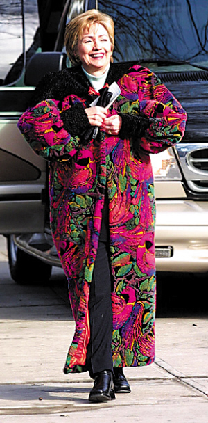 2000年,希拉里參選紐約州參議員,竟以一件大紅大綠又大紫的臃腫長褸亮相。她自嘲說:“我是循環(huán)再用理念的忠實(shí)信徒,連地毯也會(huì)翻用!