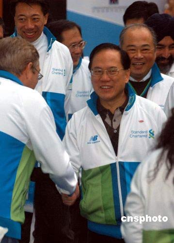 特區(qū)行政長官曾蔭權到尖沙咀彌敦道起步點,主持馬拉松開跑儀式。