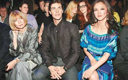 湯唯(右起)獲大會(huì)安排與Roberto Bolle及Anna Wintour并排而坐,盡顯國(guó)際地位。圖片來(lái)自香港太陽(yáng)報(bào)。
