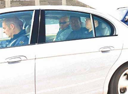 陳冠希獲安排由特別通道離開機(jī)場,在保鏢護(hù)送下驅(qū)車直往九展記者會(huì)會(huì)場。圖片來自香港東方日?qǐng)?bào)。