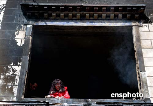 3月19日,拉薩市內(nèi)一家商鋪的店主在廢墟中尋找被焚后留下來的金銀等財(cái)物。