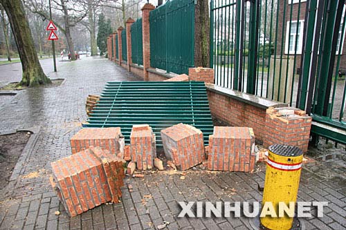 3月16日,“藏獨”分子暴力損毀中國駐荷蘭大使館圍墻欄桿和立柱。