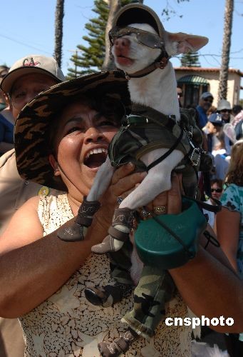 圖為一只洛杉磯長(zhǎng)灘愛犬參加“選美”。中新社發(fā) 張煒 攝