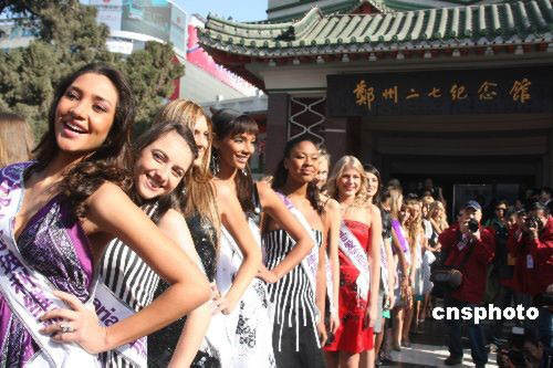 3月24日,“2008鄭州城市休閑游·國際旅游小姐走進百年德化”啟動儀式在鄭州二七廣場舉行。來自115個國家和地區(qū)的115名2008年國際旅游小姐出席了啟動儀式。中新社發(fā) 陳代述 攝
