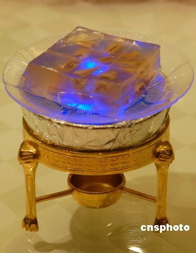 為慶祝北京奧運(yùn)場(chǎng)館國(guó)家游泳館“水立方”落成,北京全聚德亞運(yùn)村店廚師通過對(duì)奧運(yùn)場(chǎng)館水立方的細(xì)致觀察,結(jié)合鴨舌、清湯、魚膠等原材料的特性,于2008年2月19日“水立方”啟用當(dāng)天創(chuàng)作出“水立方鴨舌”這道奧運(yùn)菜品。該店還推出一系列奧運(yùn)菜品,包括乒乓鴨肝醬、短道速滑“沖刺”、網(wǎng)球沙拉、棒球玉米筍、鐵餅香菇、標(biāo)槍筍尖等與奧運(yùn)比賽項(xiàng)目名稱相關(guān)的熱冷菜及面食。中新社發(fā) 杜燕 攝