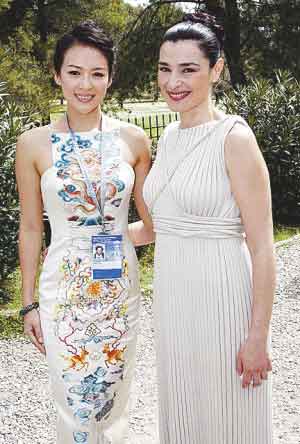 當天,章子怡身穿富有中國特色的露背中式旗袍,于上午10點半進入奧林匹亞古競技場。那件刺繡旗袍上,有龍,有白云,有鶴,有很多中國的非常吉祥的象征,由著名設計師專門設計,十分艷麗搶眼,甫一亮相,就得到了在場全體中國人的掌聲和歡呼。當天陽光很好,她的心情也不錯,但她此行的身份卻是著名網站搜狐的特約記者,在現(xiàn)場她也當了把追星族。隨著前國際奧委會主席薩馬蘭奇入場后,章子怡拿起相機對準薩翁,而后兩人愉快合影。章子怡落座貴賓席5排左邊第4位。在儀式過程中,她面帶微笑,不時站起身用相機記錄。
