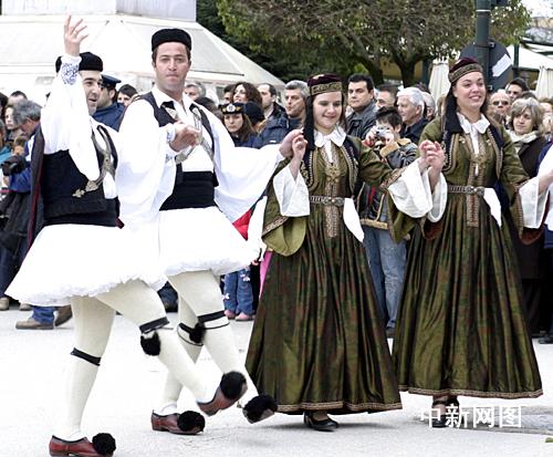 3月25日,北京2008年奧運(yùn)圣火希臘傳遞第二天,慶典儀式在終點(diǎn)約阿尼納舉行。舞蹈演員們跳起民族舞蹈迎接北京奧運(yùn)圣火。據(jù)悉,這種希臘非常著名的傳統(tǒng)舞蹈,只有在重大節(jié)日或儀式慶典的時(shí)候才會(huì)表演。中新社記者 王歡