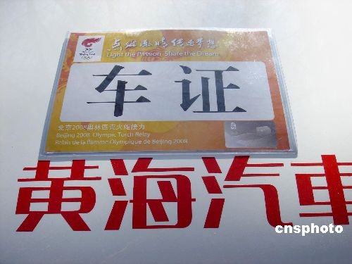 點(diǎn)燃激情傳遞夢想--奧運(yùn)圣火傳遞車證。中新社發(fā) 邵風(fēng)雷 攝