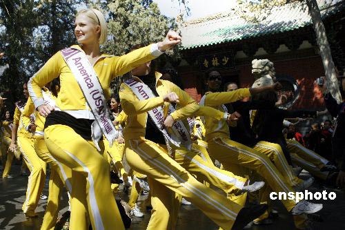 國(guó)際旅游小姐在少林寺模仿中國(guó)武術(shù)