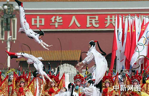 3月31日,北京奧運(yùn)會(huì)圣火歡迎儀式暨傳遞啟動(dòng)儀式在北京天安門(mén)廣場(chǎng)啟動(dòng)。圖為儀式現(xiàn)場(chǎng)。中新社發(fā) 張宇 攝