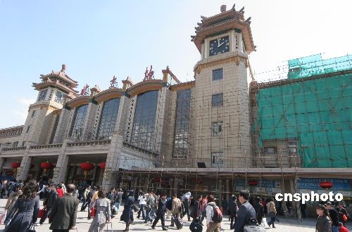 圖:北京站迎奧運(yùn)更換車(chē)站頂部琉璃瓦(2)
