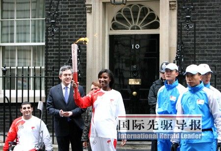 布朗在首相官邸迎接圣火